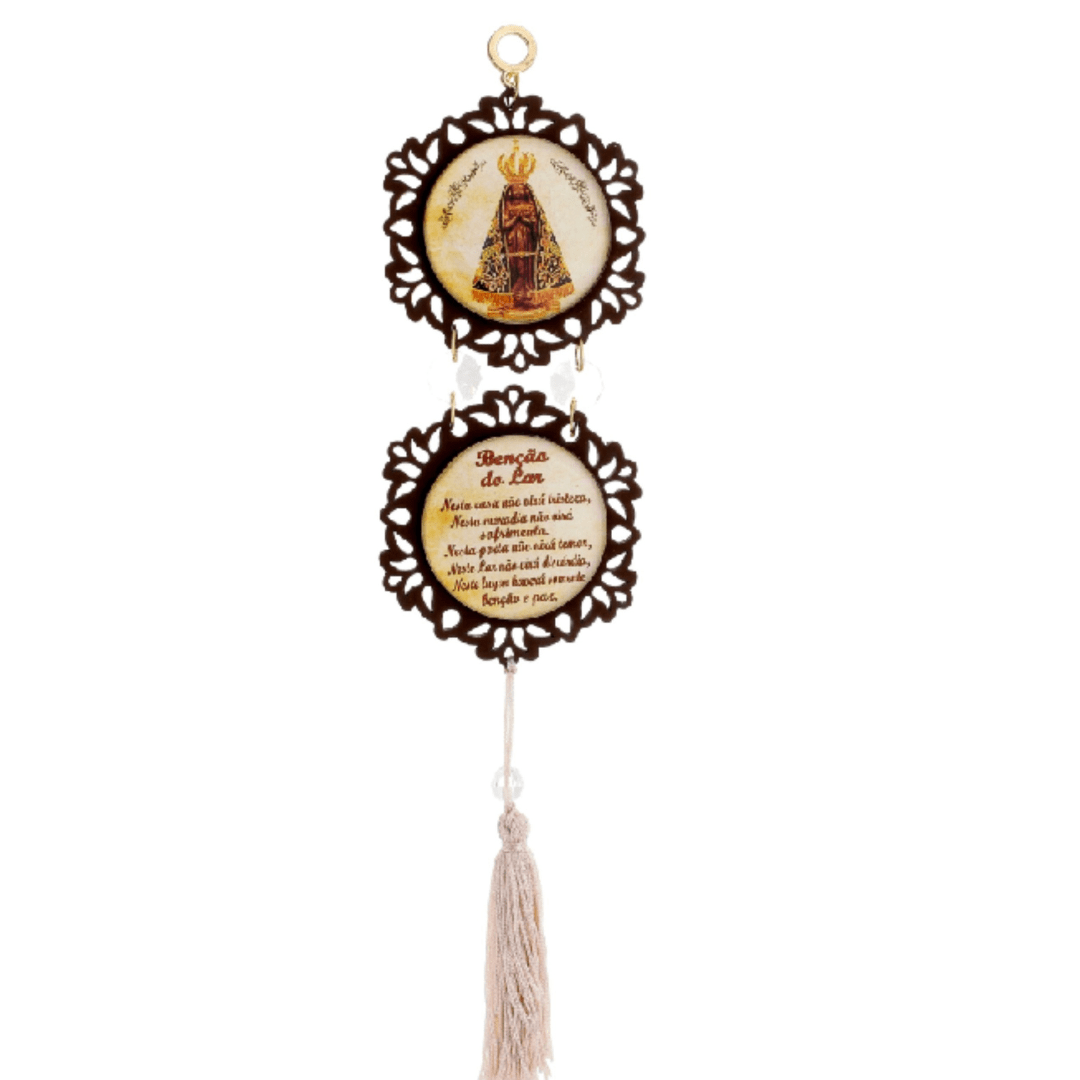 Adorno Duplo Redondo Resinado Nossa Senhora Aparecida - Marrom