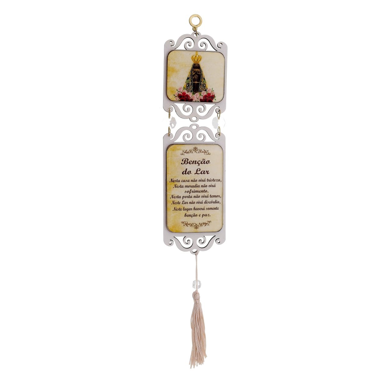 Adorno Duplo Retangular Resinado Nossa Senhora Aparecida - Branco