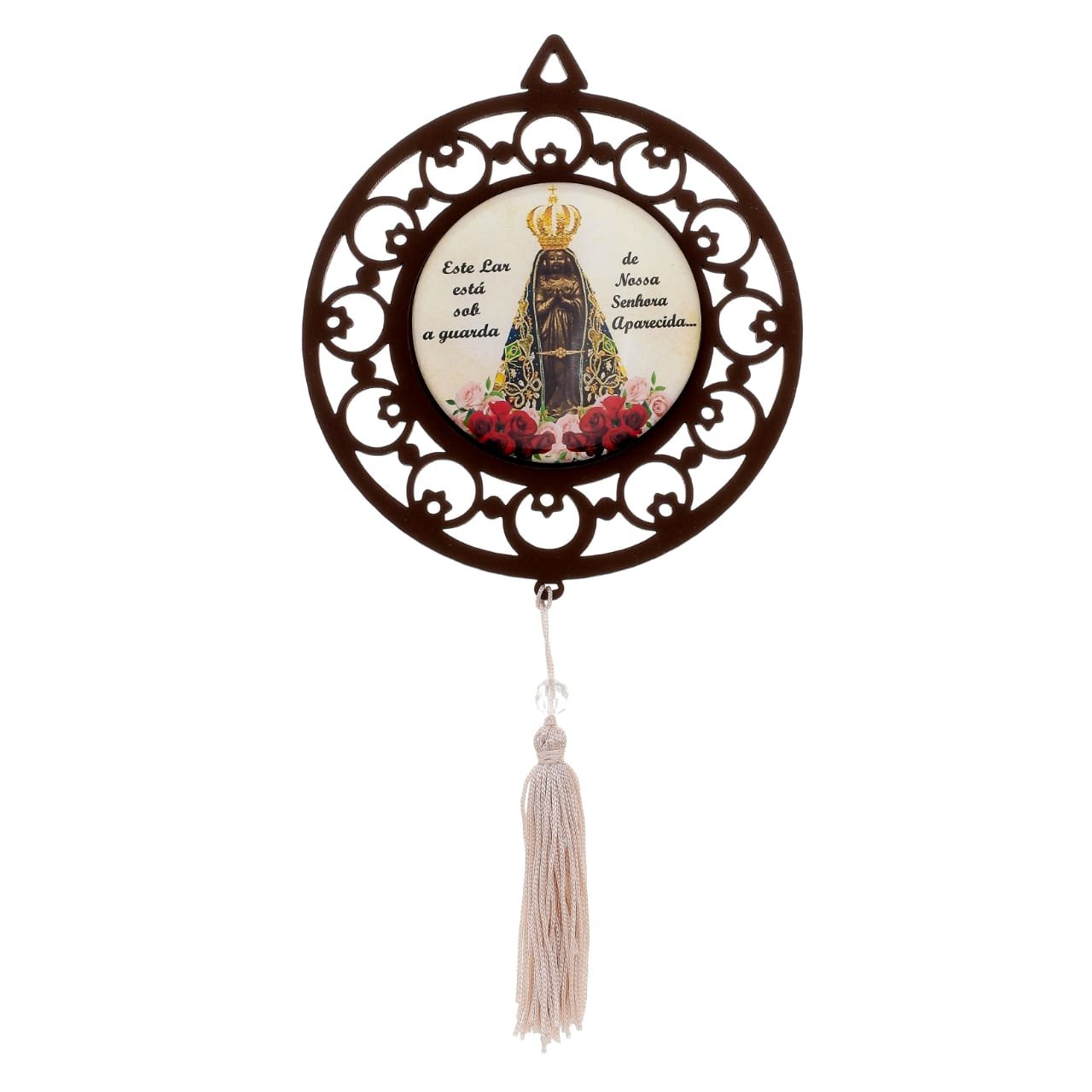 Adorno Redondo Resinado Nossa Senhora Aparecida - Marrom