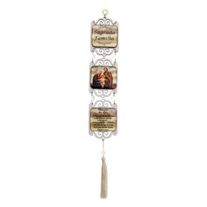 Adorno feito em madeira mdf no formato quadrado com imagem resinada de Sagrada Família.