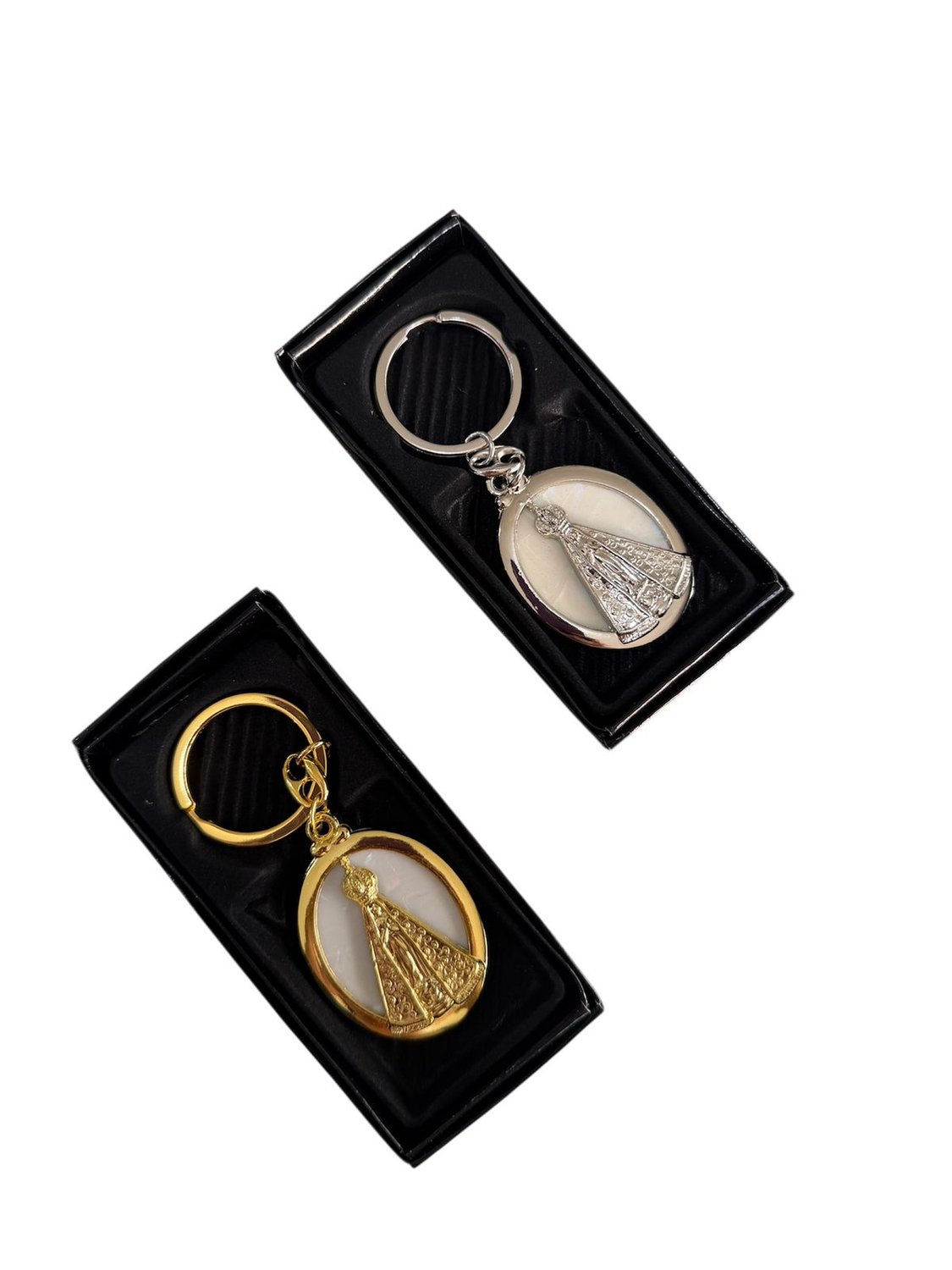 Chaveiro de Metal com Caixinha Aparecida Redonda madre Pérola - 6 unidades
