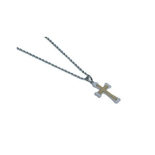 Corrente aço inoxidável com crucifixo pai nosso amarelo