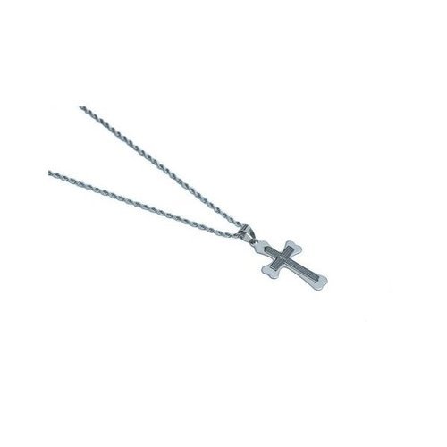 Corrente aço inoxidável com crucifixo pai nosso preta
