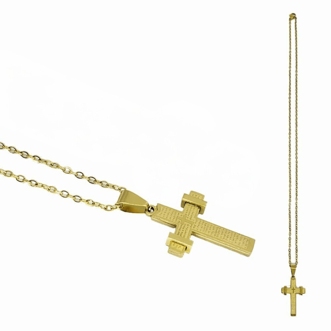Corrente aço Inoxidável Fina Cruz Pai Nosso - Dourada