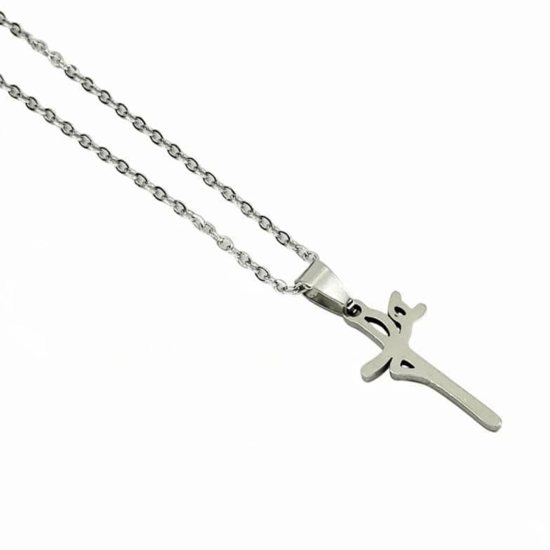 Corrente feita em Aço Inoxidável na cor Prata fina no tamanho de 45cm com Pingente religioso feito em aço inoxidável.