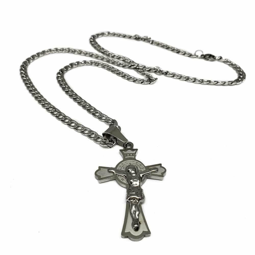 Corrente aço Inoxidável Grossa Cruz São Bento - Prata