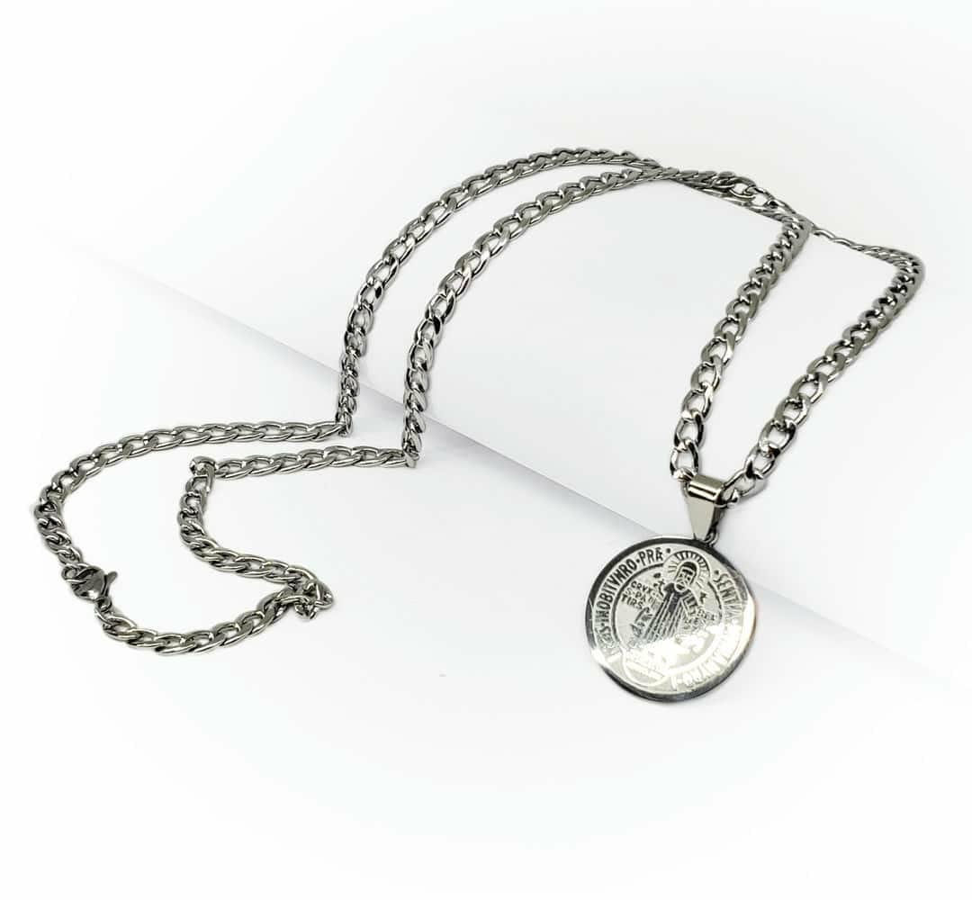 Corrente em Aço inoxidável 2.omm com 60cm de comprimento com pingente da medalha de São bento