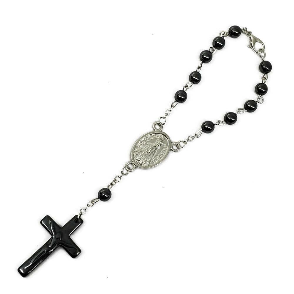Dezena para Carro feito com contas de Hematita De Nossa Senhora Aparecida