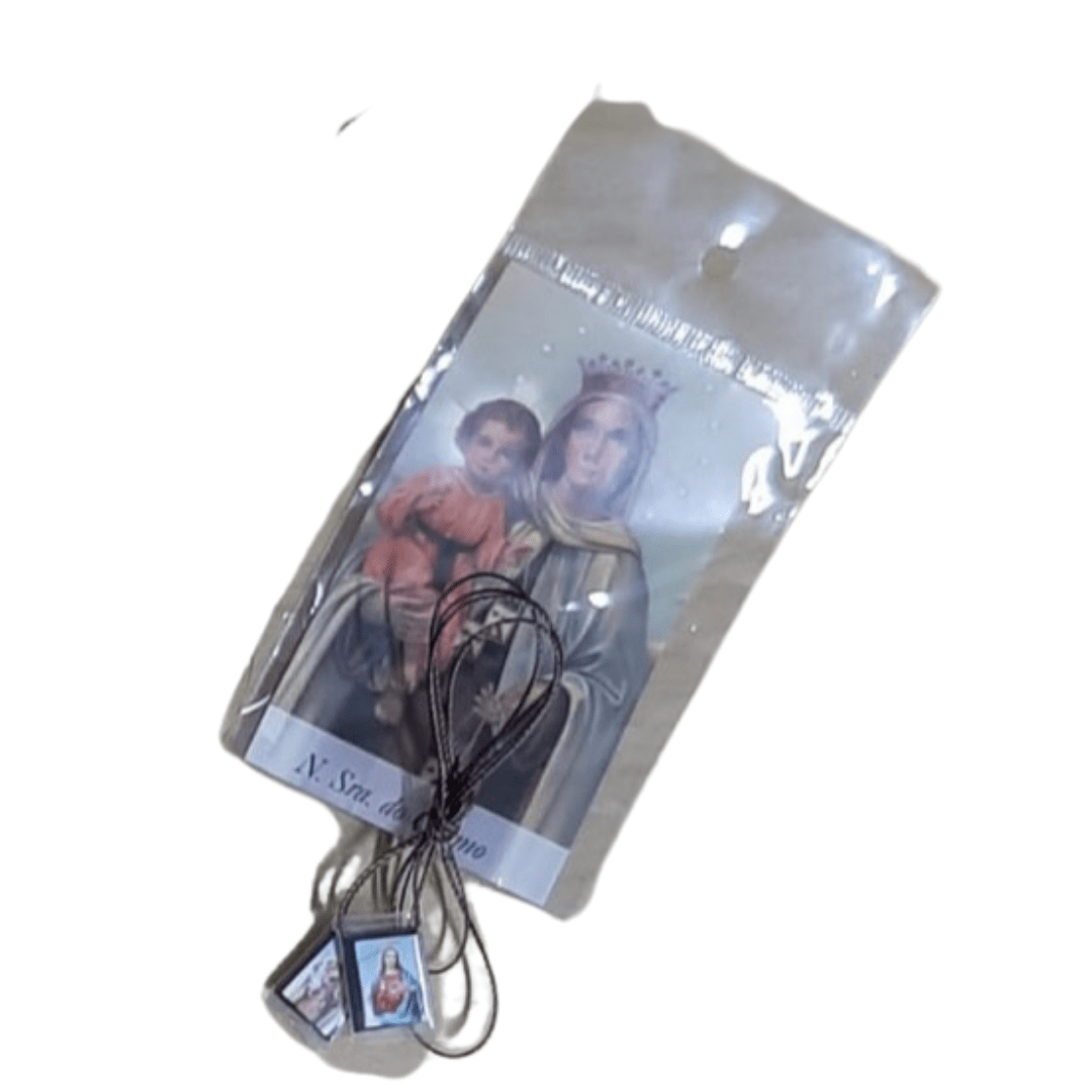 O Escapulário de Tecido traz a imagem do Sagrado Coração de Jesus de um lado e Nossa Senhora do Carmo do outro, seguindo o modelo tradicional. Acompanha um Santinho com a oração de Nossa Senhora do Carmo, proporcionando um complemento espiritual para a sua fé.