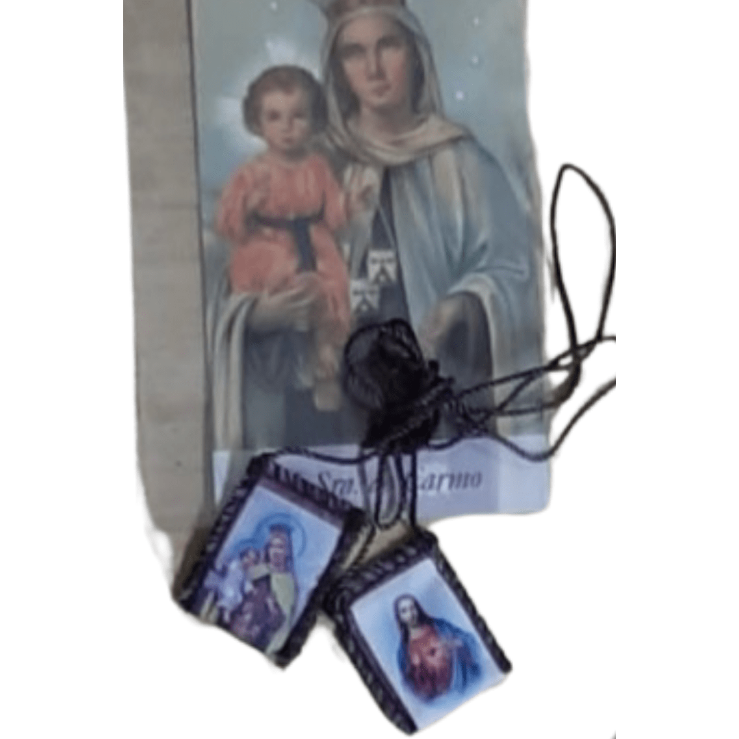 O Escapulário de Tecido traz a imagem do Sagrado Coração de Jesus de um lado e Nossa Senhora do Carmo do outro, seguindo o modelo tradicional. Acompanha um Santinho com a oração de Nossa Senhora do Carmo, proporcionando um complemento espiritual para a sua fé.