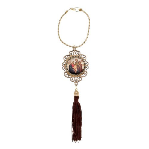 Adorno em MDF para carro com imagem colorida em resina de alta qualidade, borda trabalhada a laser, detalhes em strass, corda para pendurar na cor dourada fecho na dor dourada e pompom na cor marrom.