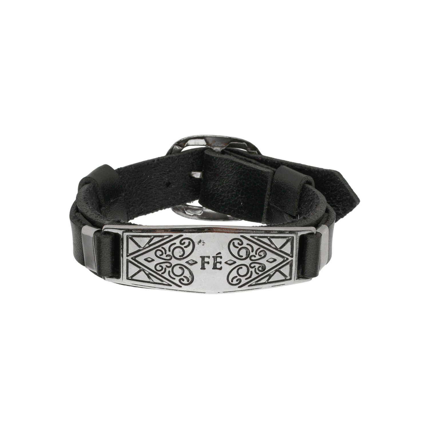 Pulseira de Couro - Placa Fé