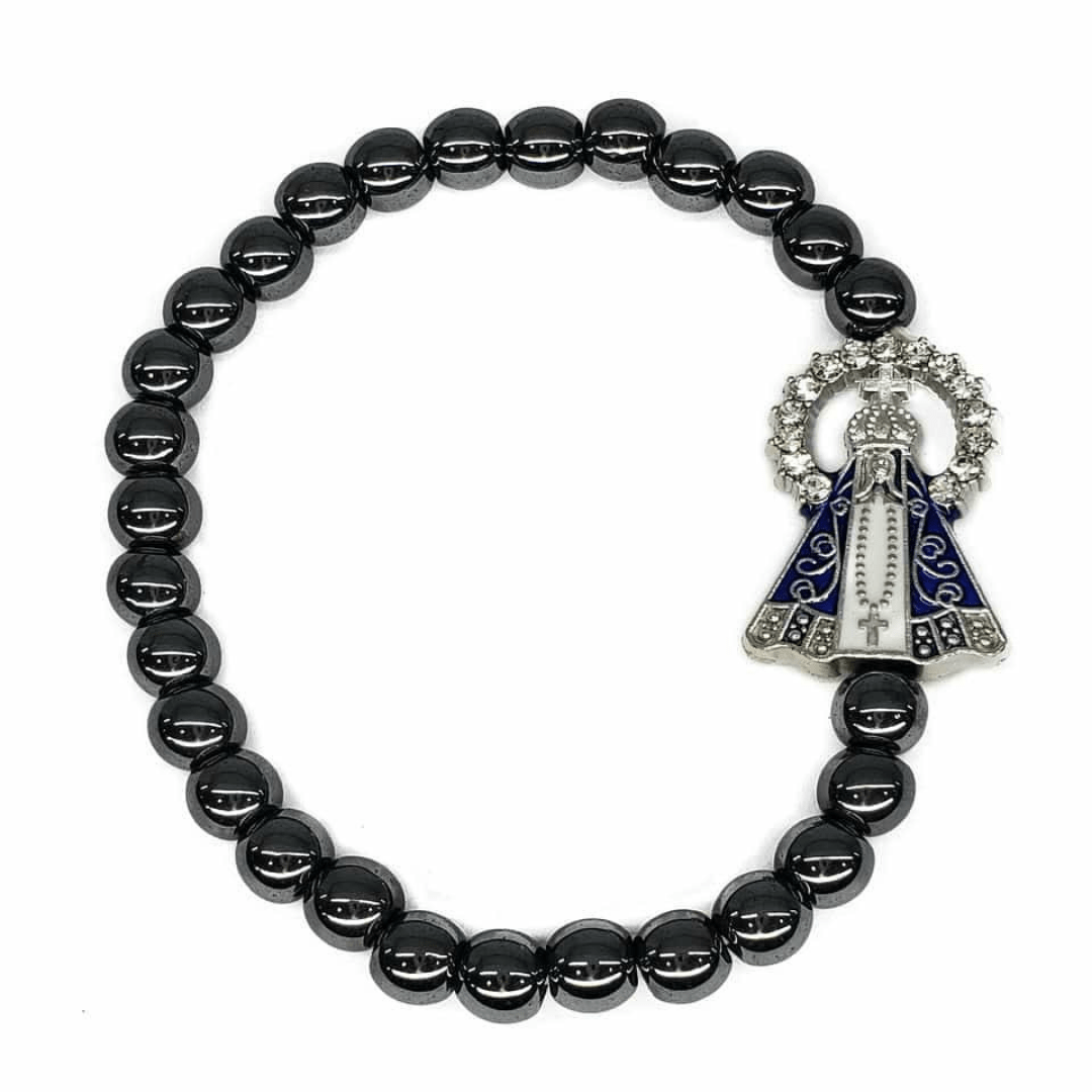 Pulseira de Hematita Elástico com Medalha Aparecida Azul - 6 unidades