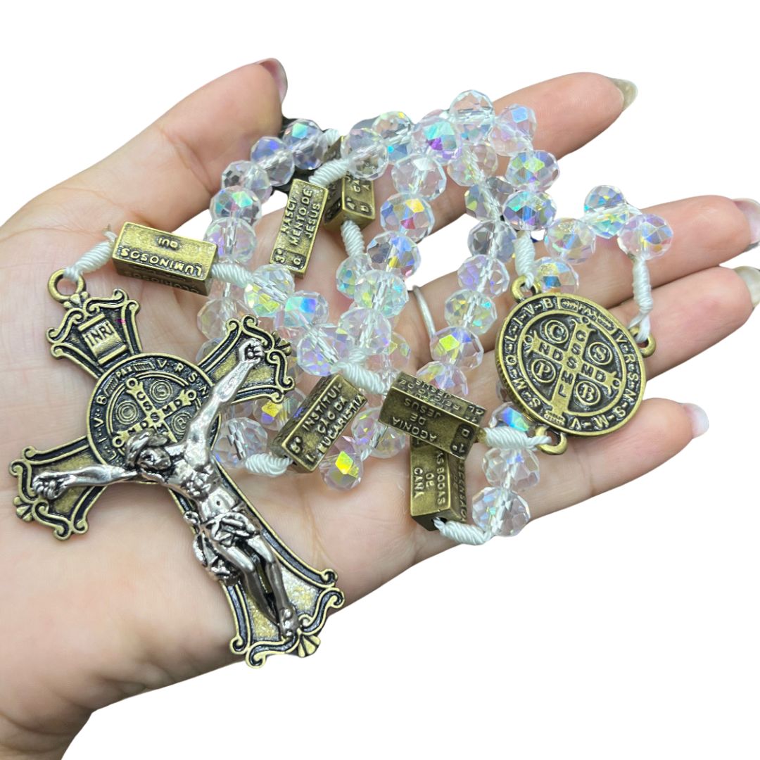 Sinta a paz e a conexão espiritual ao rezar o Santo Terço, contemplando os mistérios da Vida de Jesus com cada conta cuidadosamente elaborada.