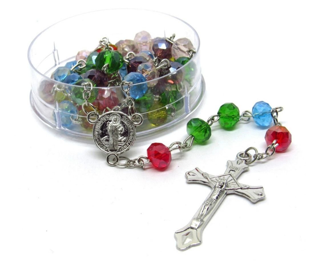 Terço De Cristal São Bento Caixinha - 6 Unidades