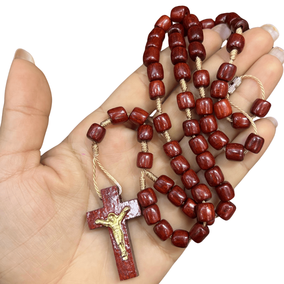 Esse belo terço possui contas e entremeio de madeira Pau Brasil. O crucifixo de madeira tem o Cristo Crucificado na cor dourada. Prático para o uso no dia a dia, esse terço de madeira é perfeito para expressar sua fé e confiança.