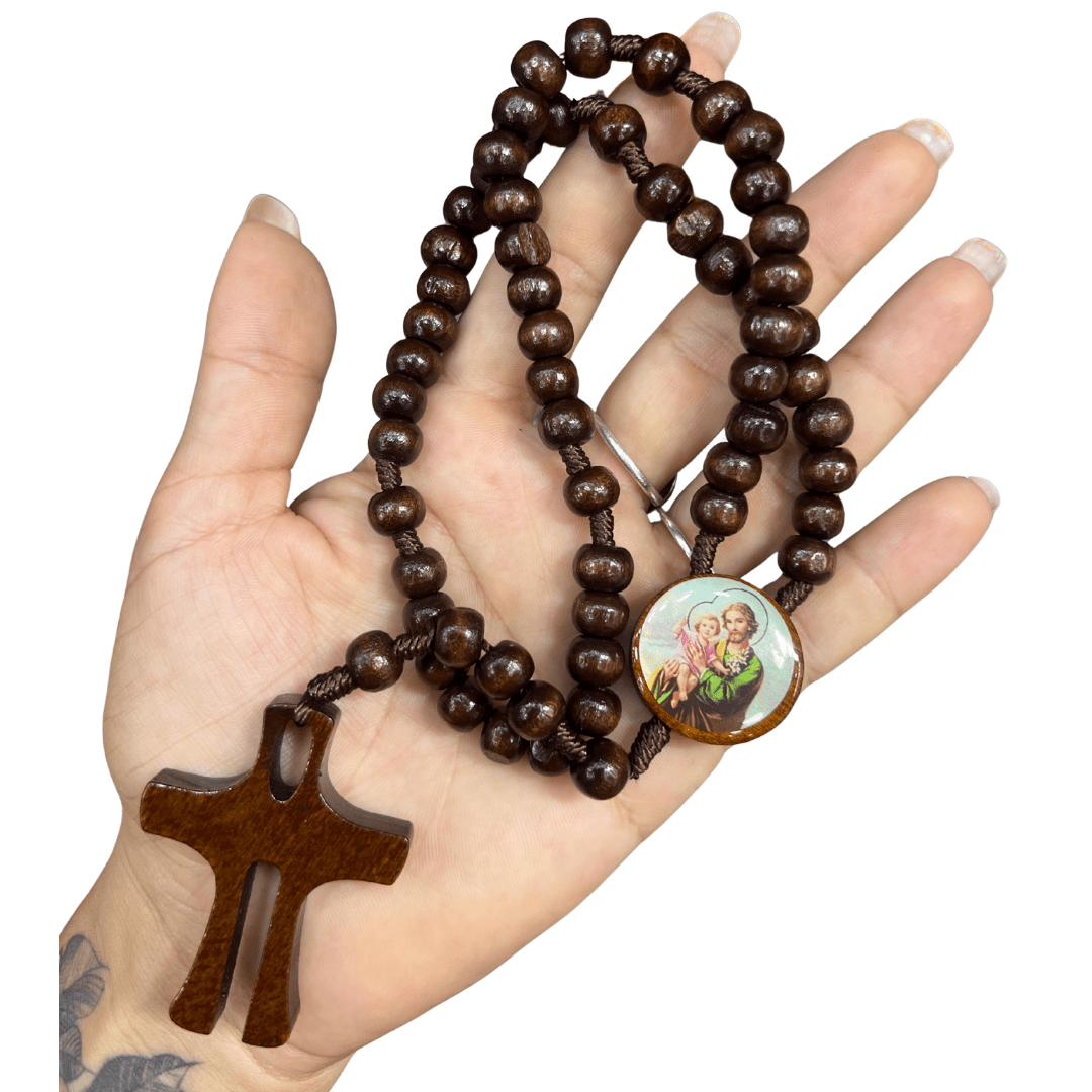 Esse belo terço possui contas e entremeio de madeira Pau Brasil. A medalha de é feita em resina colorida e o crucifixo de madeira tem o Cristo Crucificado na cor dourada. Prático para o uso no dia a dia, esse terço de madeira é perfeito para expressar sua fé e confiança.