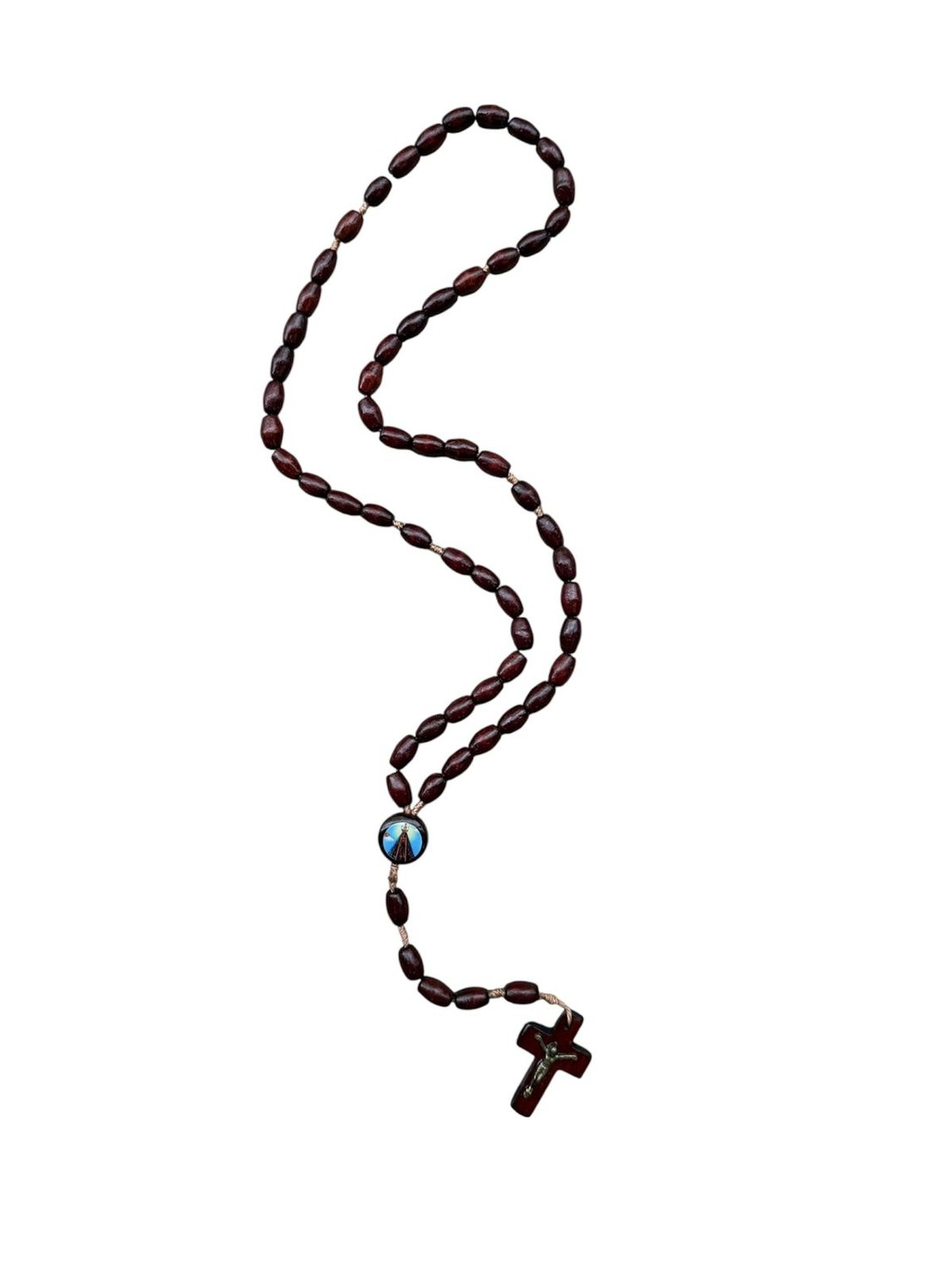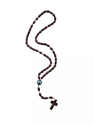 Esse belo terço possui contas e entremeio de madeira . A medalha de  é feita em resina colorida e o crucifixo de madeira tem o Cristo Crucificado na cor dourada. Prático para o uso no dia a dia, esse terço de madeira é perfeito para expressar sua fé e confiança.