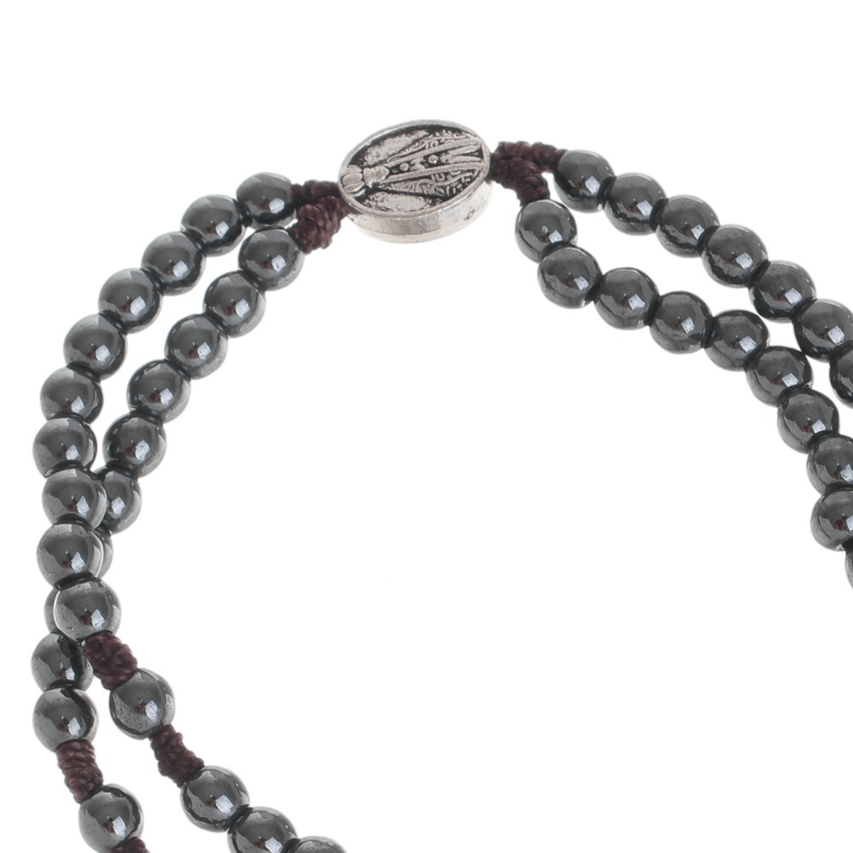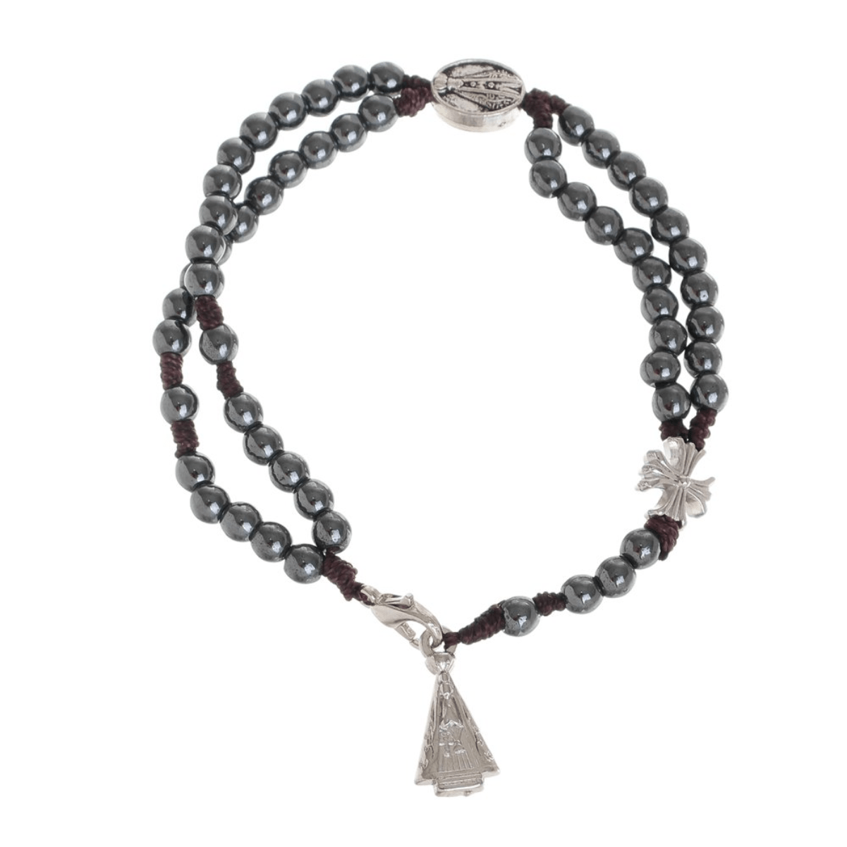 Esse terço de pulso de Nossa Senhora Aparecida possui contas de pedra hematita, medalha e pingente na cor prata e fecho de metal. Além de ter um belíssimo design, o acessório católico foi desenvolvido com material de excelente qualidade, o que garante maior durabilidade e ótima resistência.